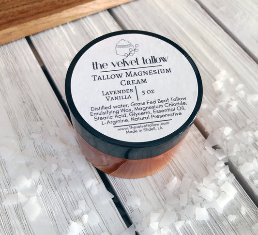 Magnesium Cream with Grass Fed Beef Tallow, Unscented-Lavender Vanilla, Good for Sore Muscles